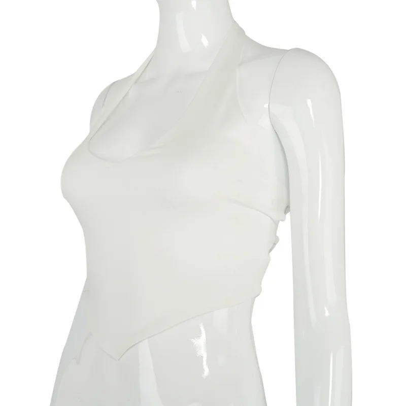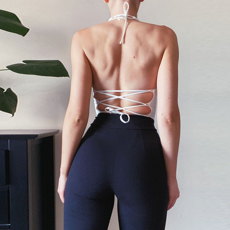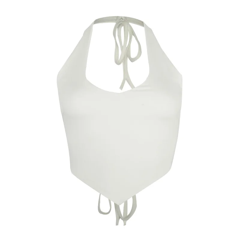 Women Triangle Halter Top Slim Backless Cross Lace-up OUT0881