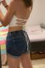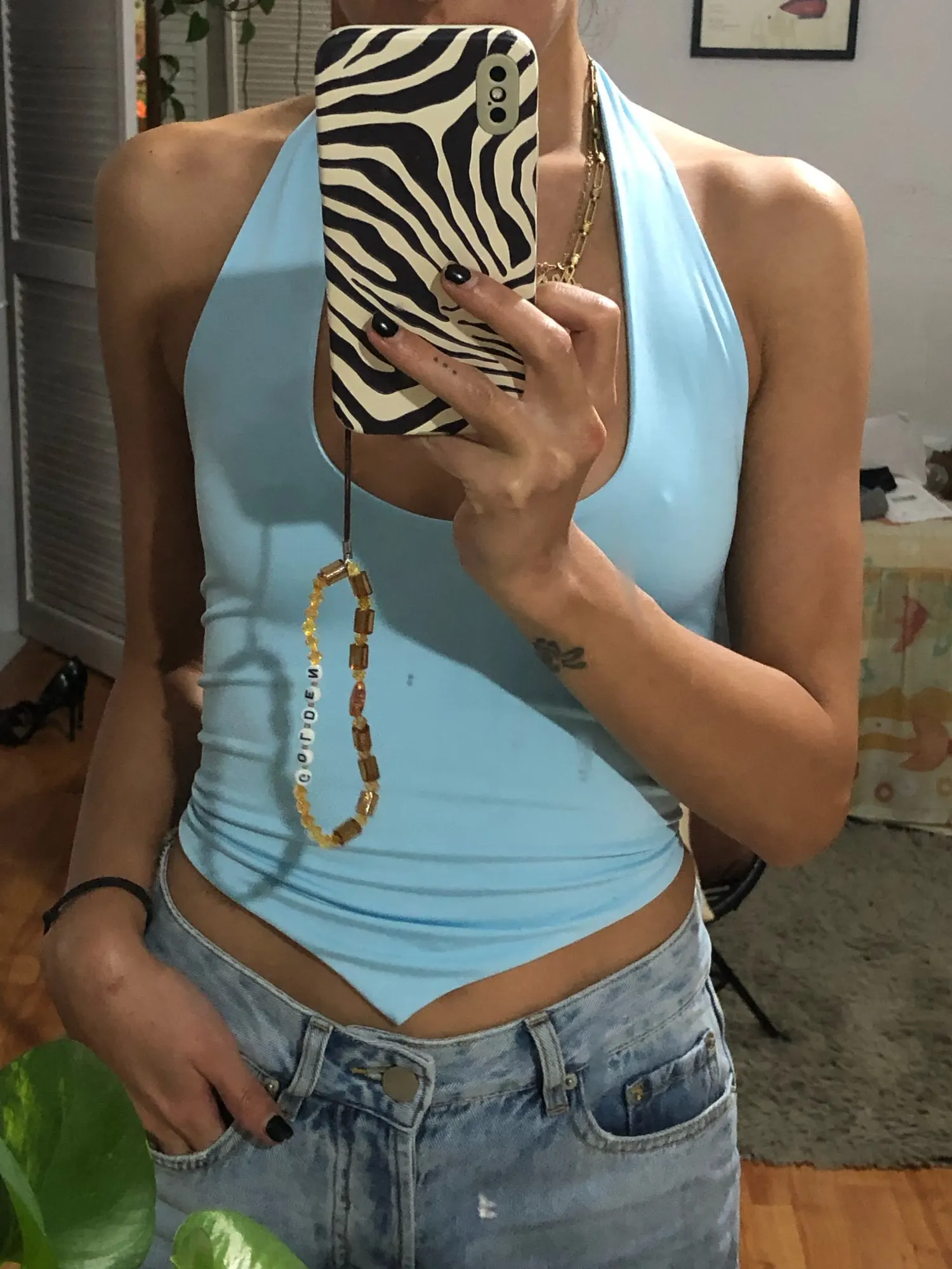 Women Triangle Halter Top Slim Backless Cross Lace-up OUT0881