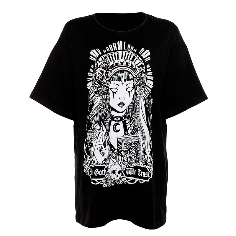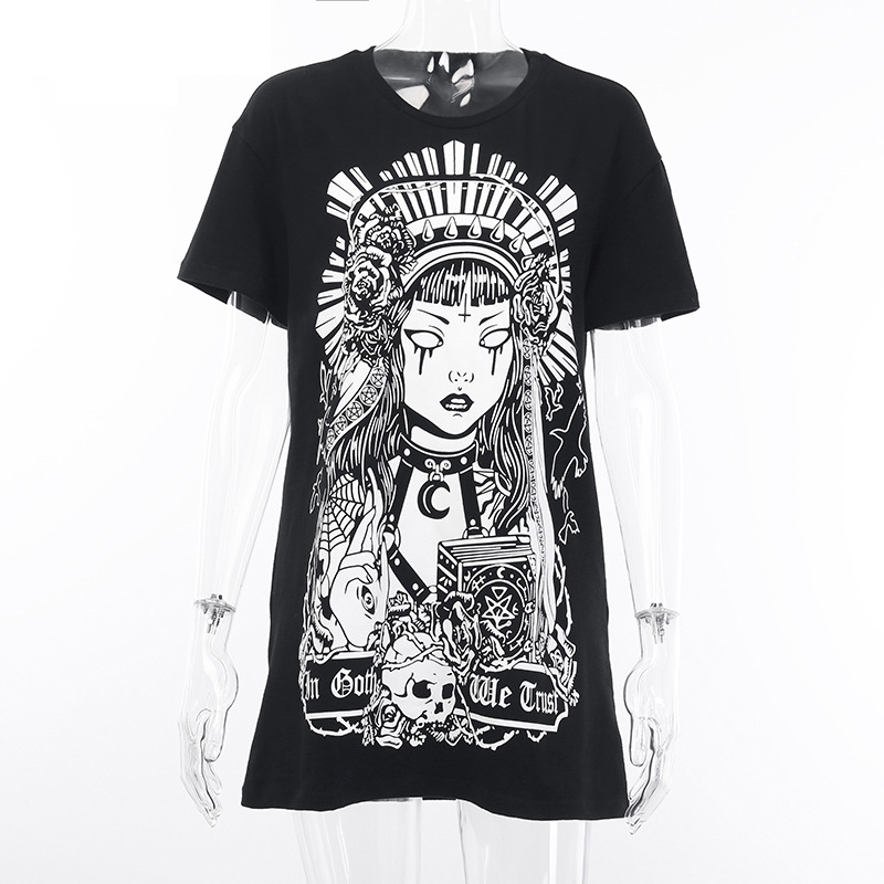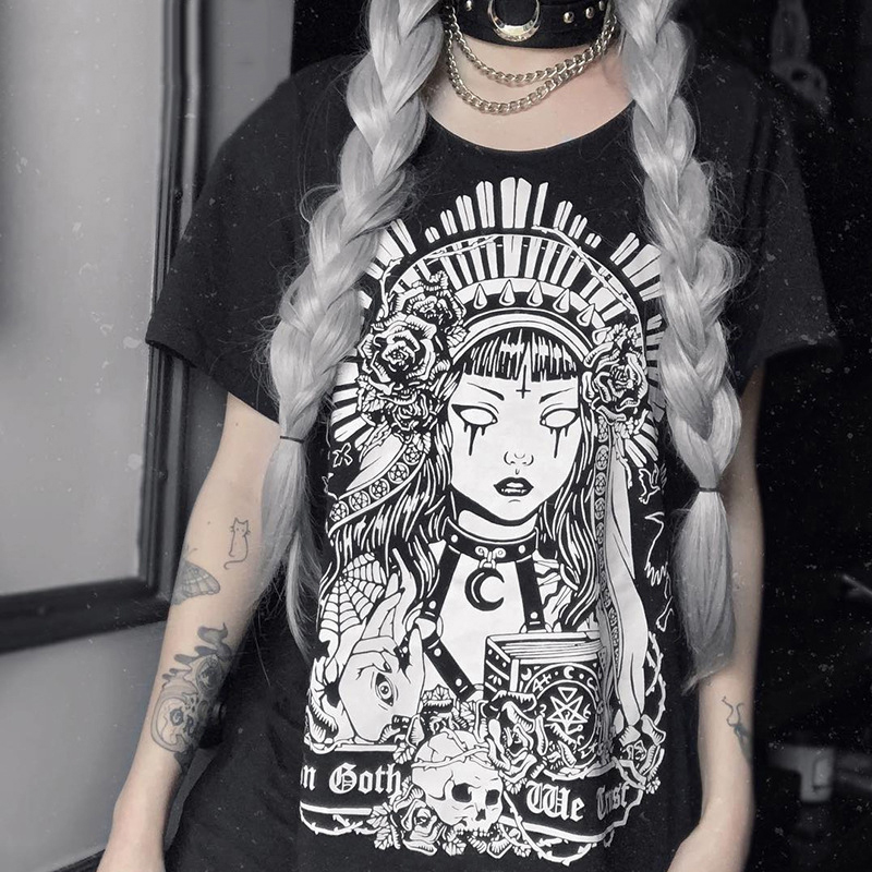 Women Tshirt Aesthetic Goth Dark Grunge Black Print Punk Harajuku Streetwear L0113