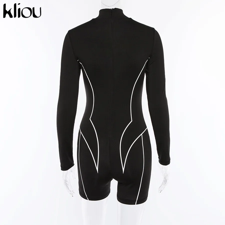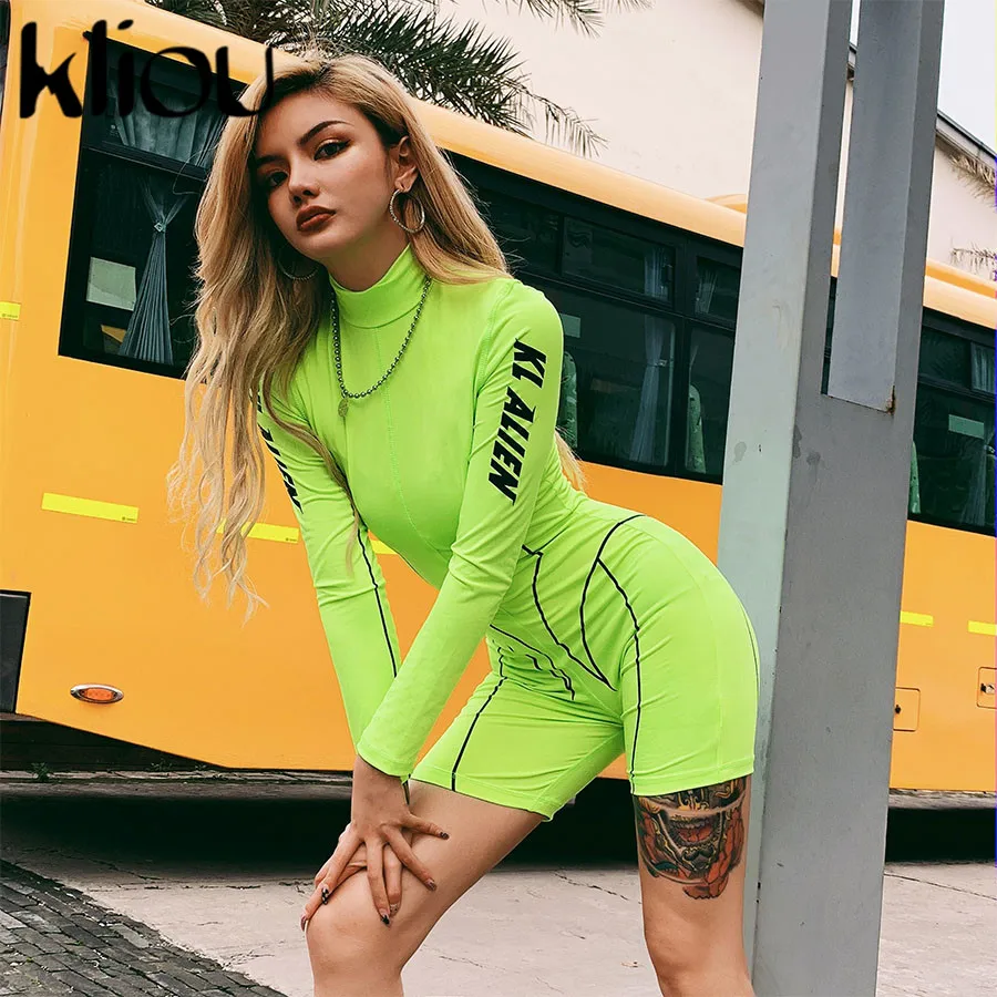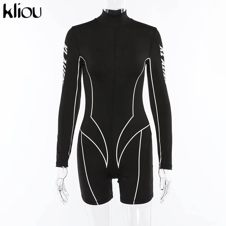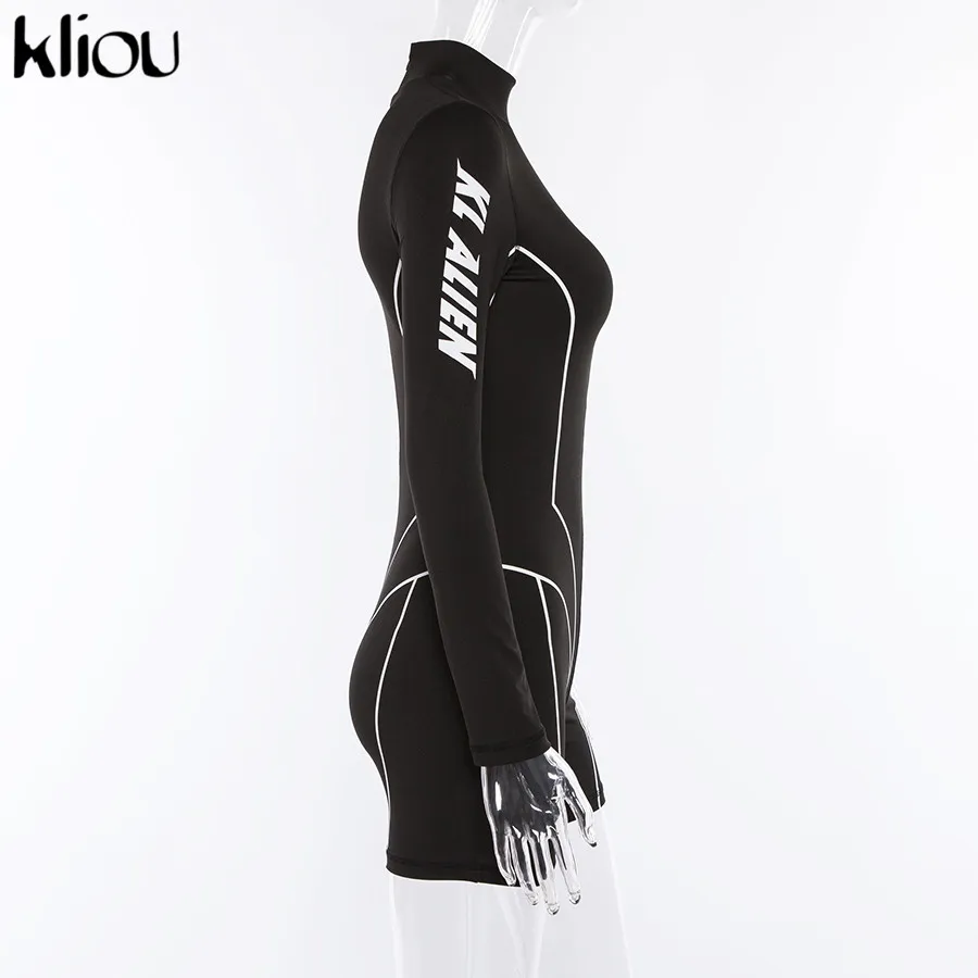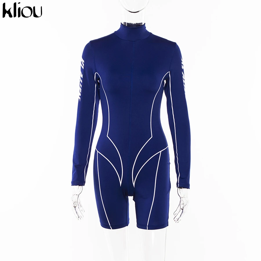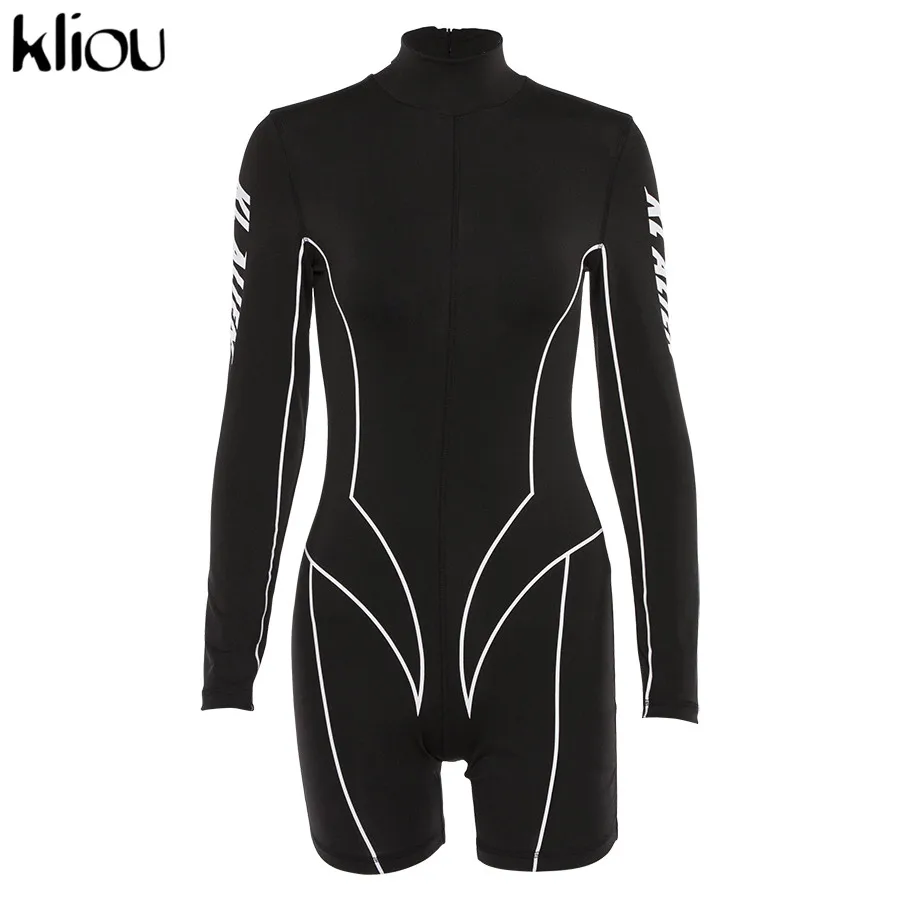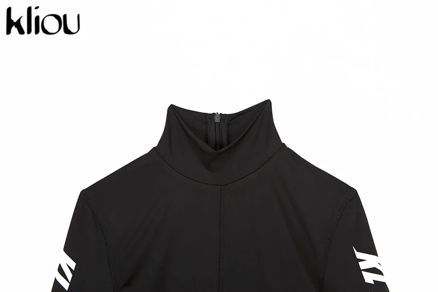 Women Turtleneck White Striped Patchwork Letter Print Push Up Skinny Casual Bodysuit