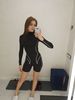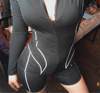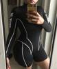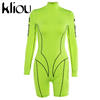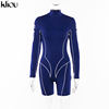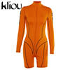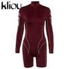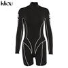 Women Turtleneck White Striped Patchwork Letter Print Push Up Skinny Casual Bodysuit