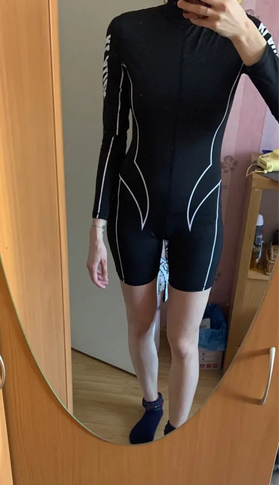 Very nice looks, not cheap. Due to the big difference between the waist and hips, a little does not fit the waist behind, but this is not a problem. Excellent stretches, not translucent. On my 94-67-102 m-Ka sat perfectly.