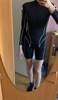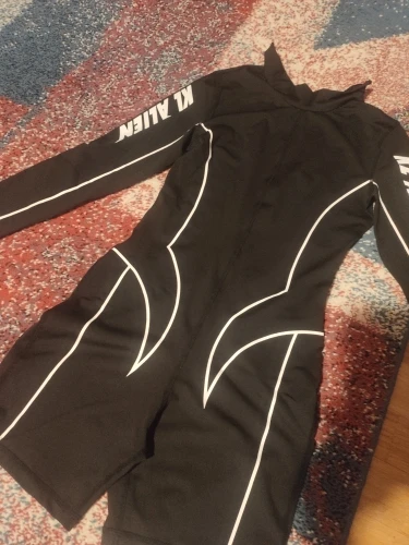 It's transparent a little bit and on the lower back it doesn't exactly stick well, but that may be because of the shape of my body. Very happy with the product, I ordered an M because my thighs are very gordis and legs are fine, but in my neck I choke a little if I zip it up.