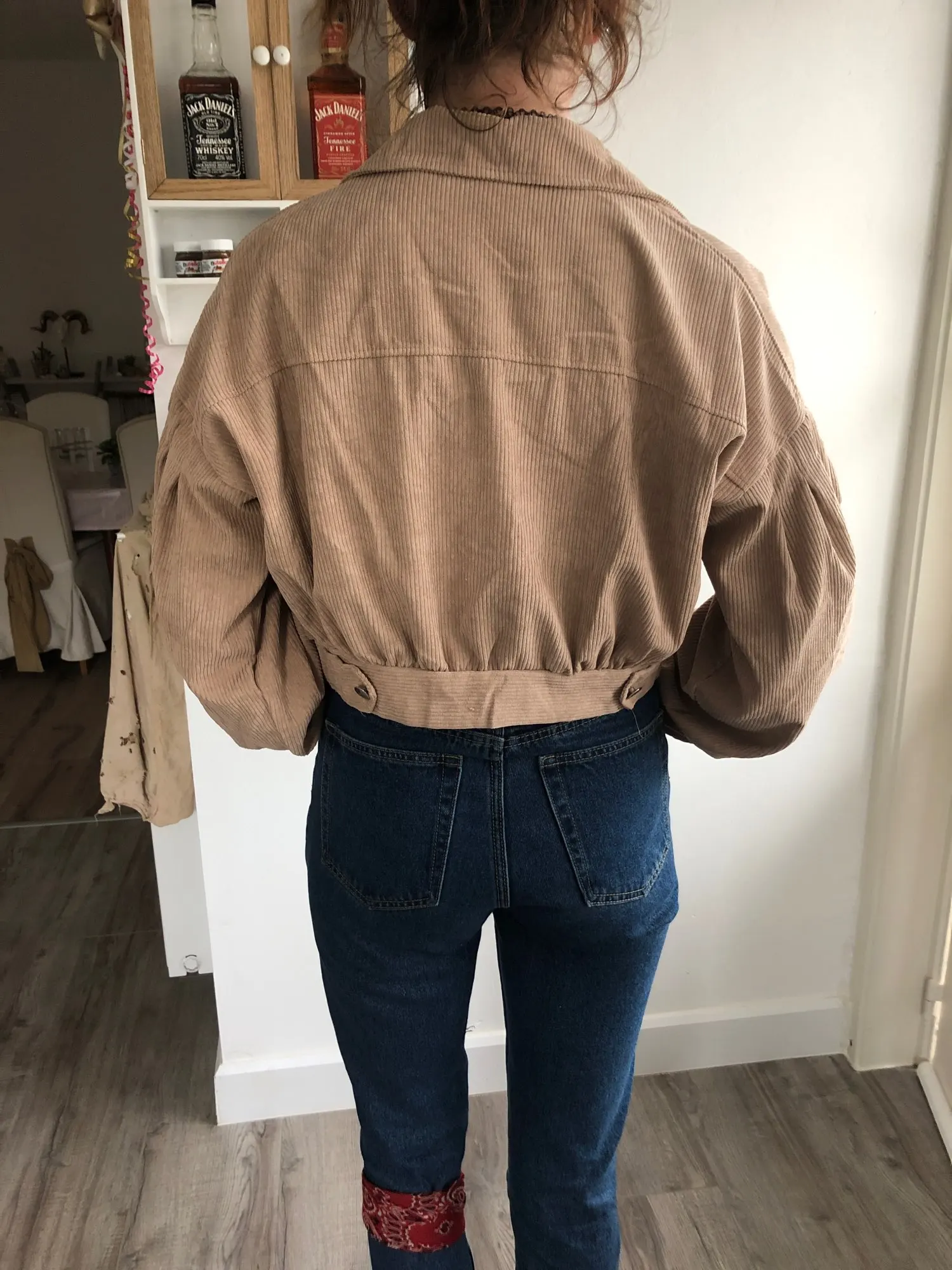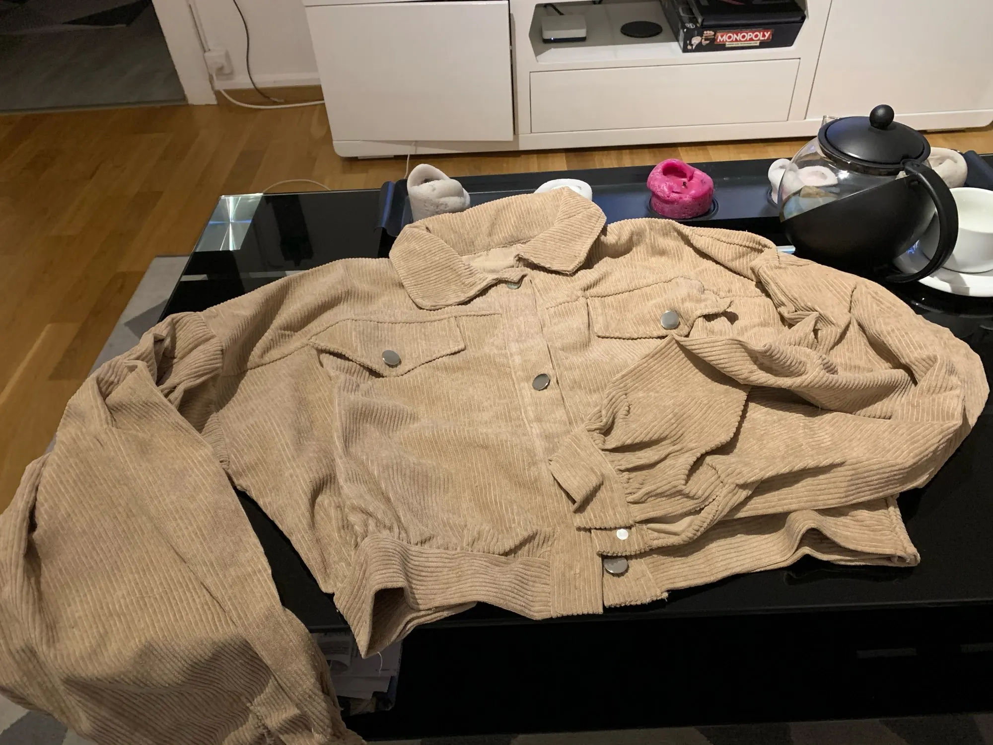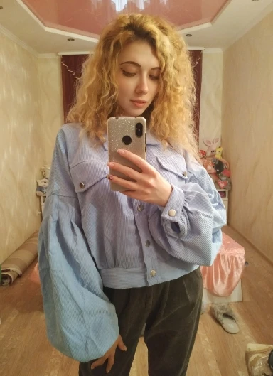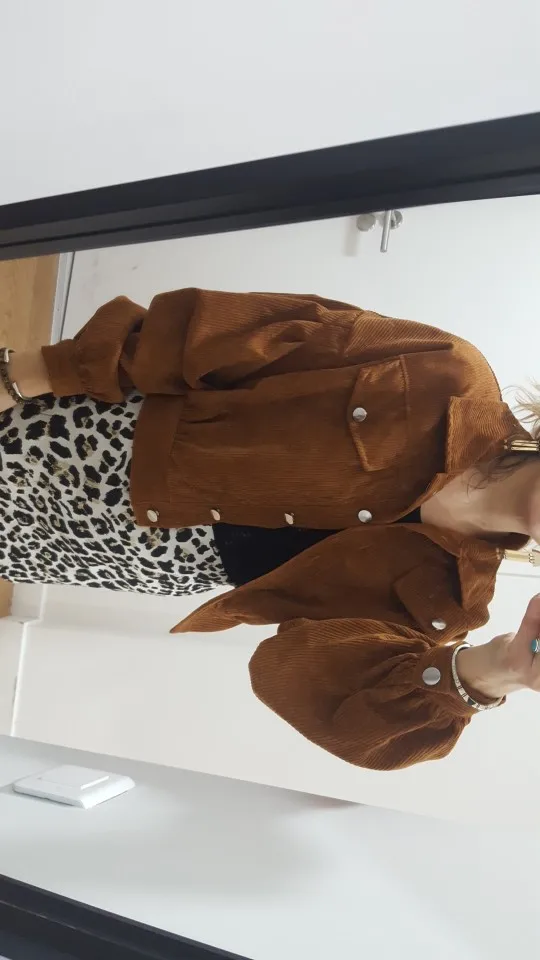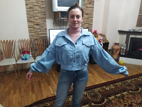 I liked it very much, I ordered it, I received it today. The fabric is thin, soft corduroy. Sewing cool, especially the sleeve. Sleeves are very large, to the wrist folds, I thought that M is large, but if you take S, it will be small in the wrist and at the waist.
