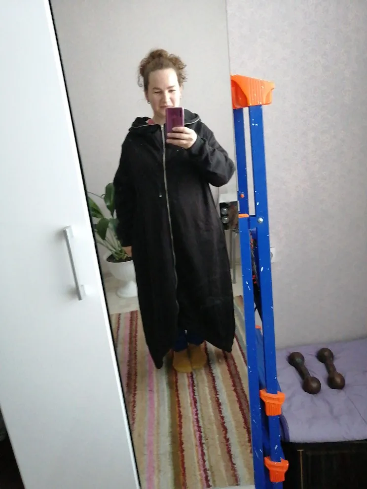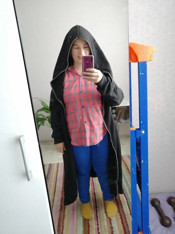 Interesting thing. Synthetics are warm. Can be worn as a winter dress. Quality is good. My height is 164. Size XL. I liked it. If the fabric was still Cotton, in general there would be a bomb)