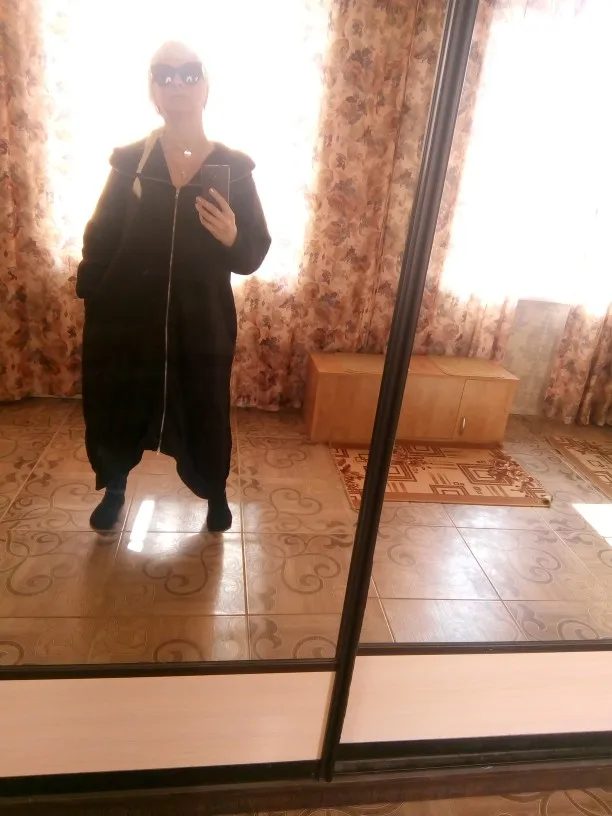 Not a bad thing. Sewn neatly, does not smell. At 50 size chose 5 XL. Sits freely, as she wanted. Long. Everything suits.