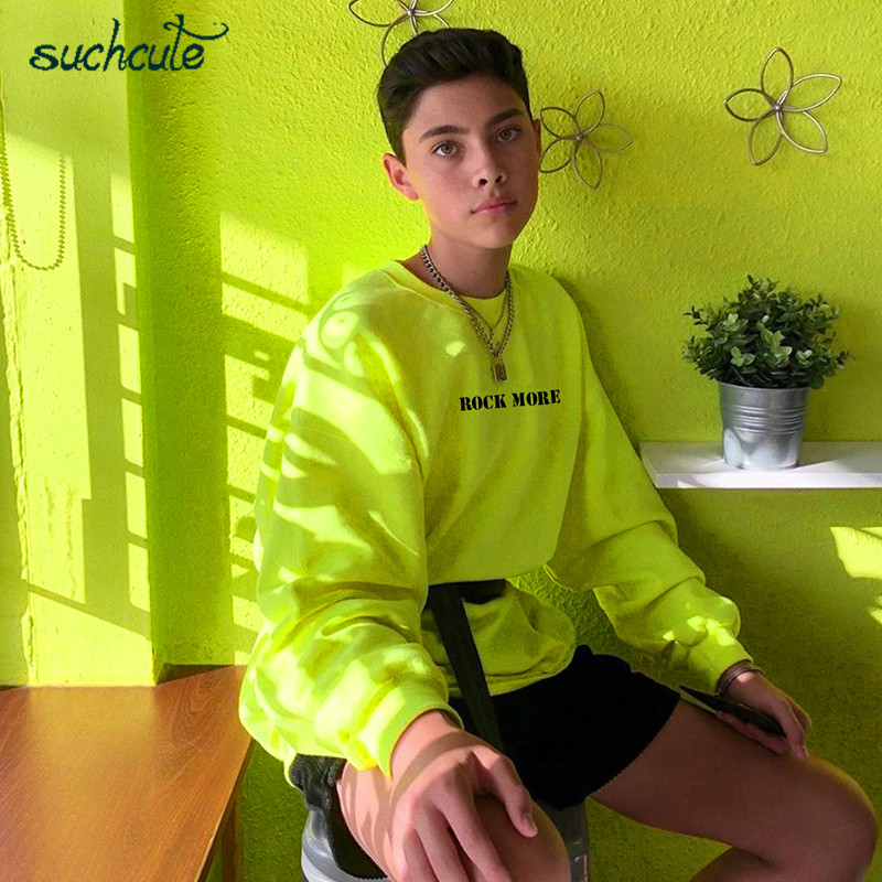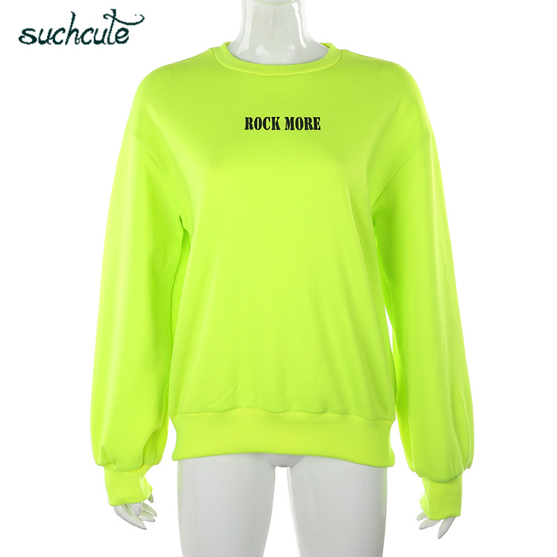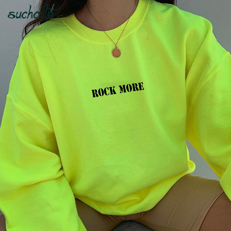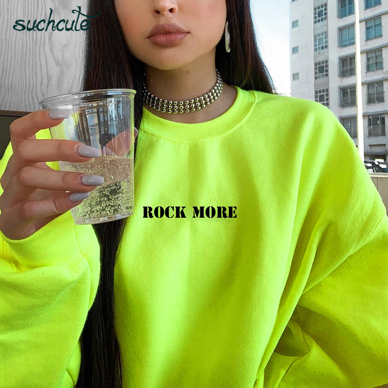 Womens Hoodies Neon Green Rock More Latters Casual L0185