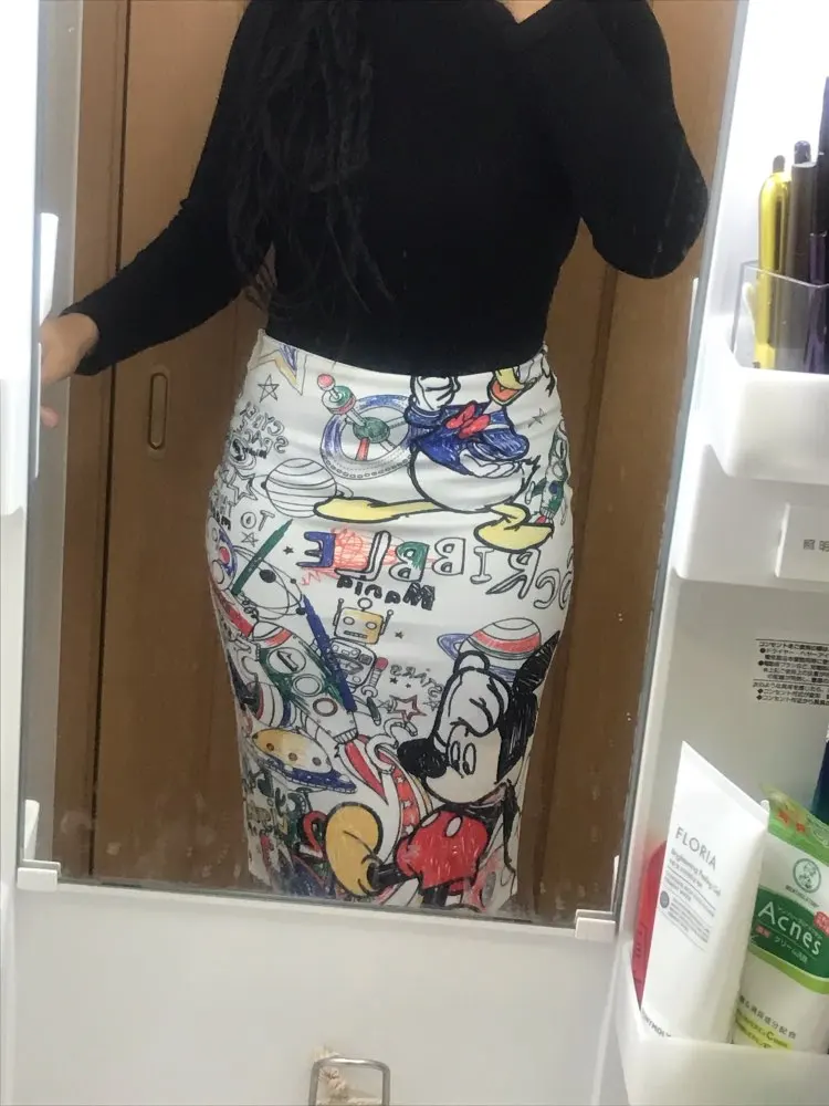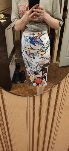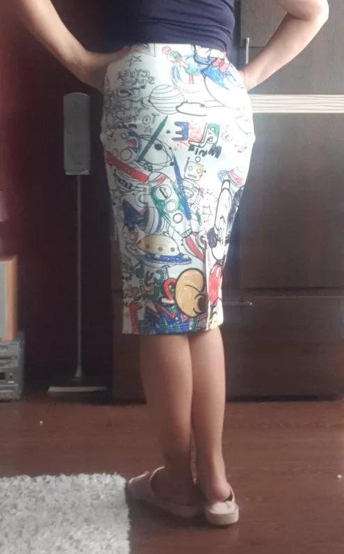Womens Pencil skirt Cartoon Mouse Print High Waist Slim Skirts L0027