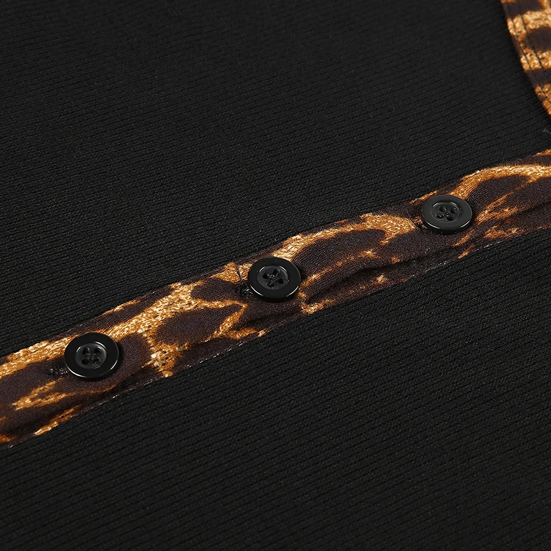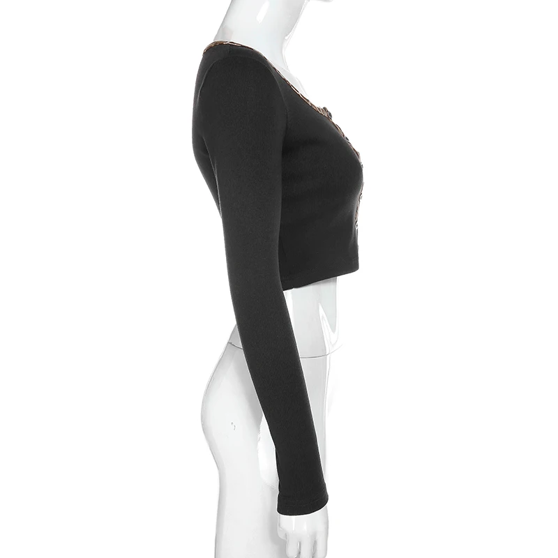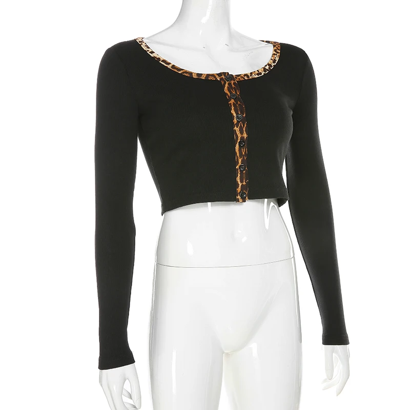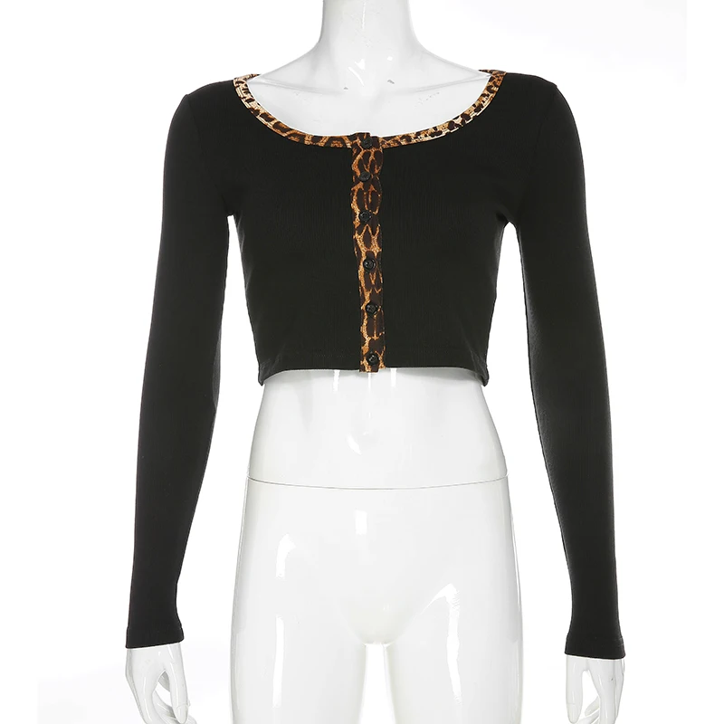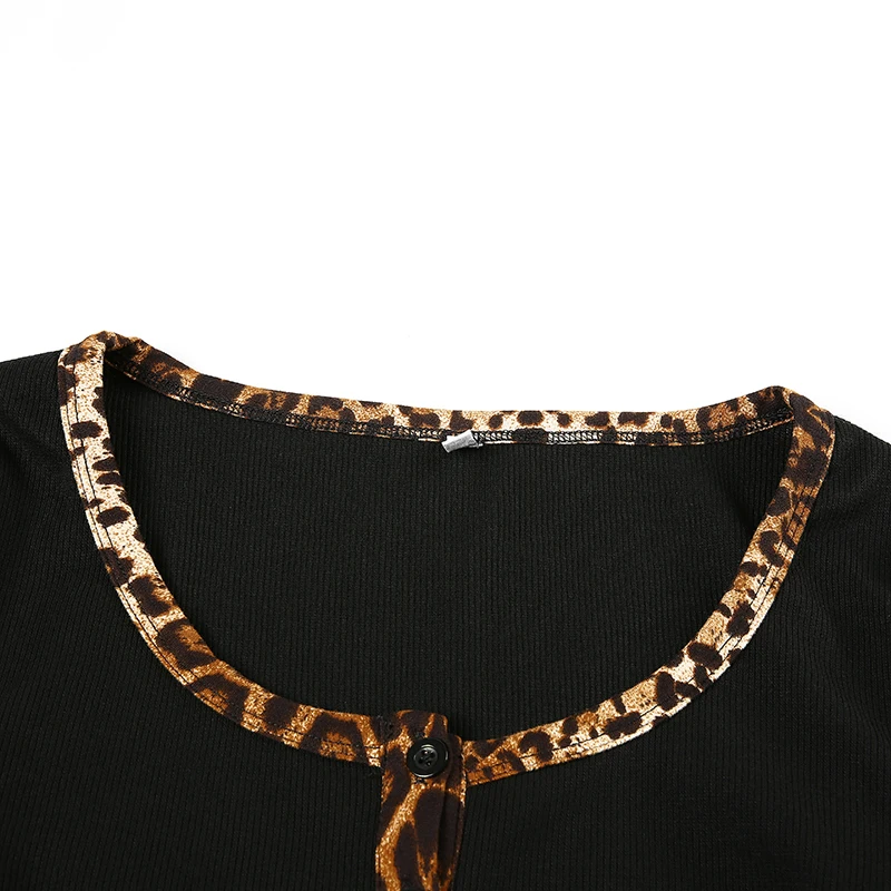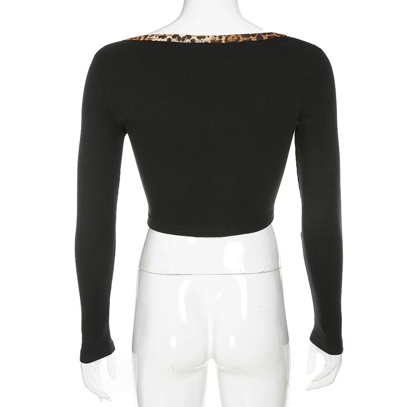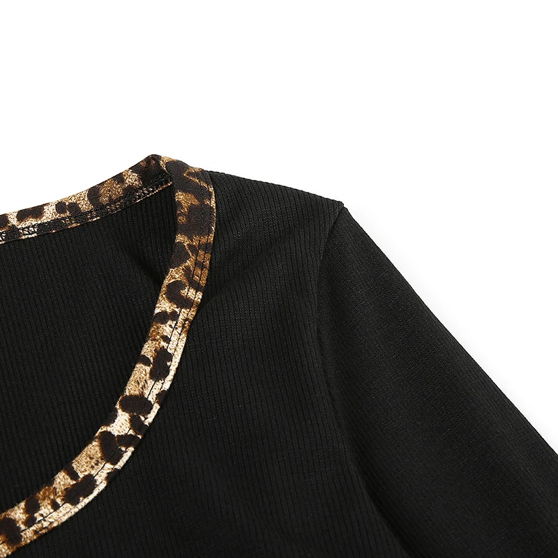 Womens T Shirt Casual Long Sleeve Patchwork Leopard Cropped Top L0071