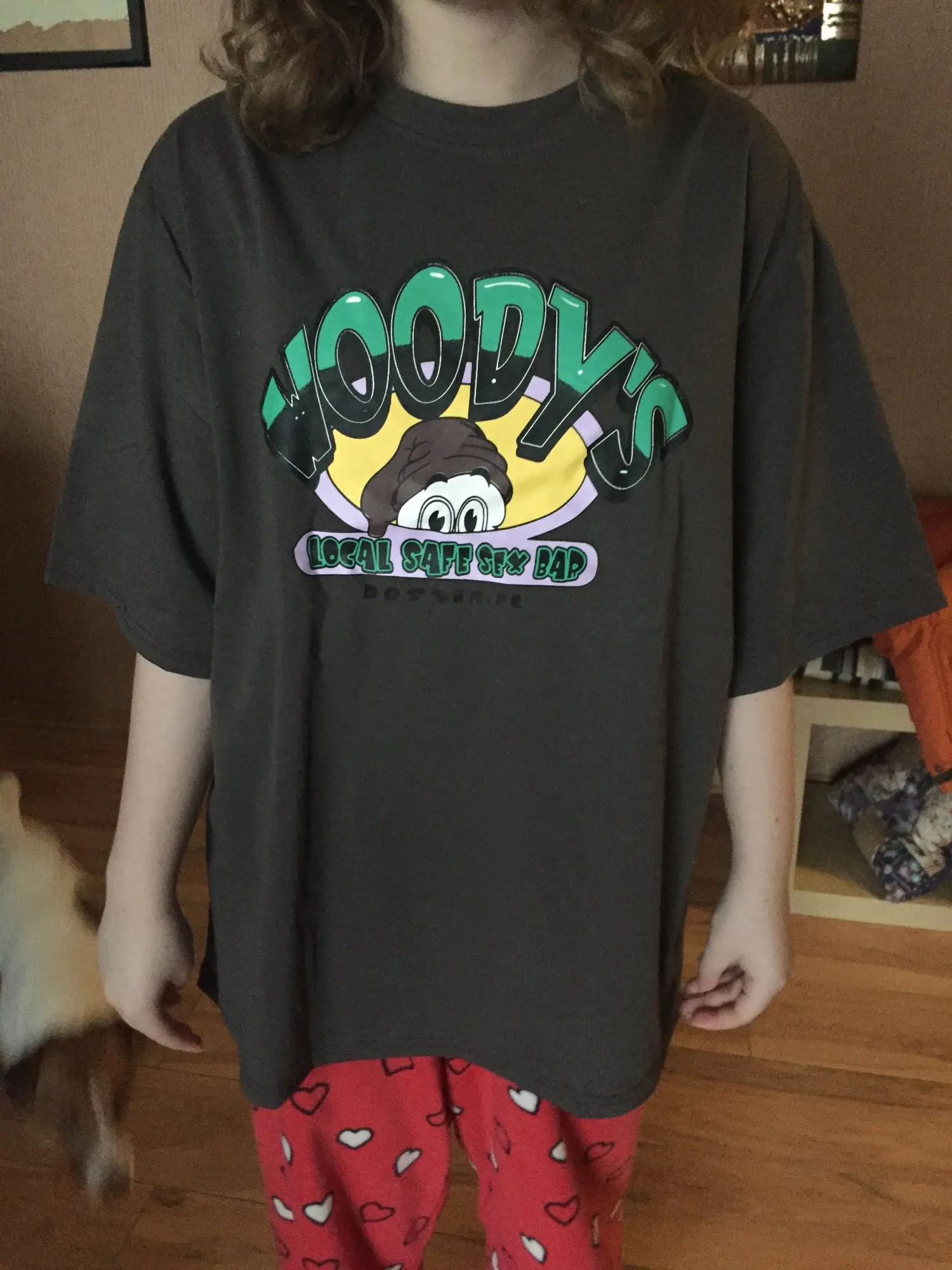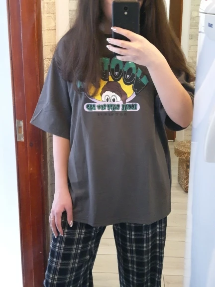 Качество хлопок+полиэстер, не 100% хлопок. Имейте ввиду, если кому-то это важно. Чтобы было овертайз, то берите. XXL, я 161 и вес 48, для меня XL не такой уж оверсайз. Доставили быстро. Цвет неожиданно приятный :)