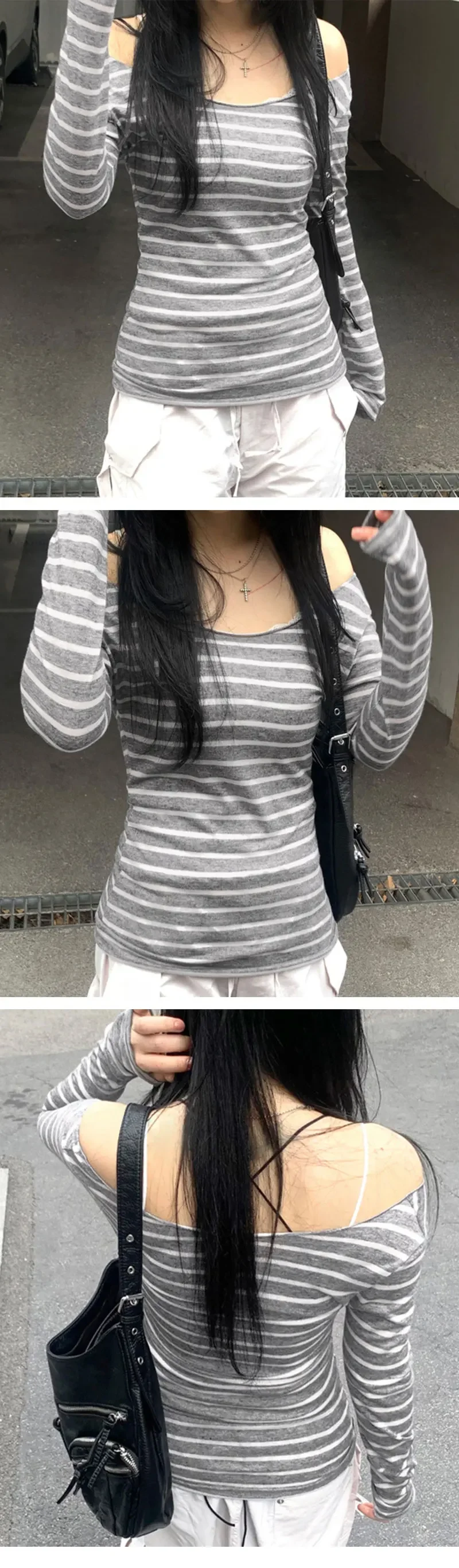 Y2K Streetwear Korean Style Top Slim Striped Long Sleeve T-Shirt OUT1053