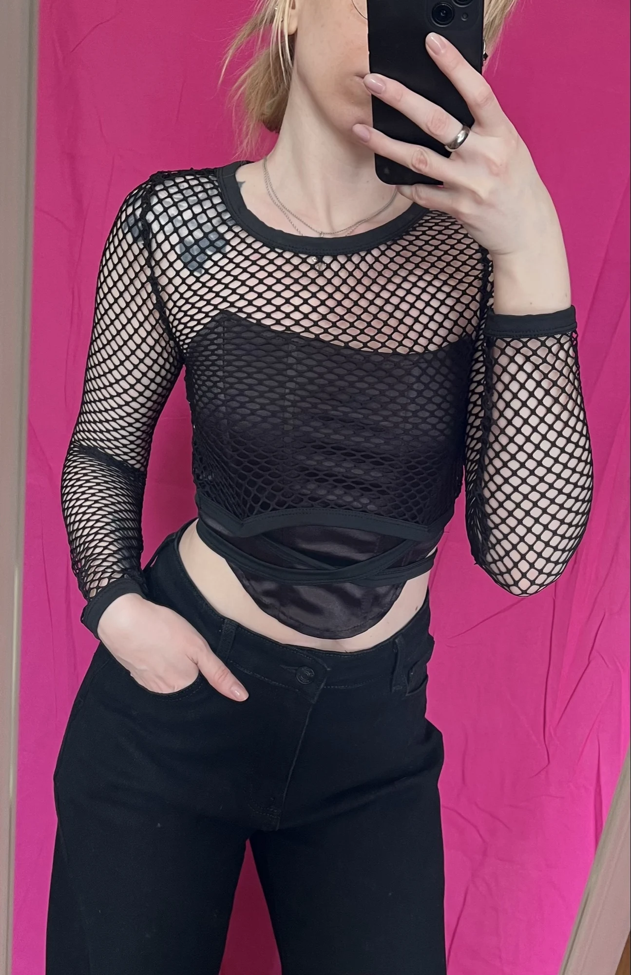 Looks interesting, for size 42 I chose size M, could have safely taken L. The sleeves are a bit short for long hands. Can be worn with different tops and bras.